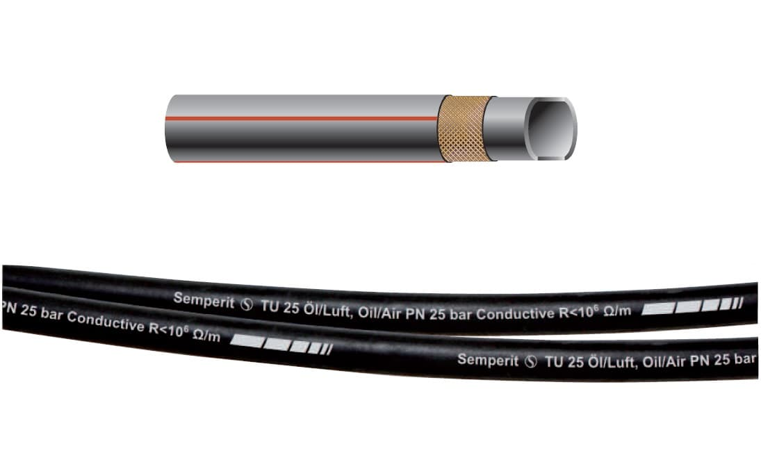 "SEMPERIT S TU 25 Ol/Luft Oil/Air PN 25 bar Antistatic R < 106 Ohm/m" дополнительно три продольные красные полоски